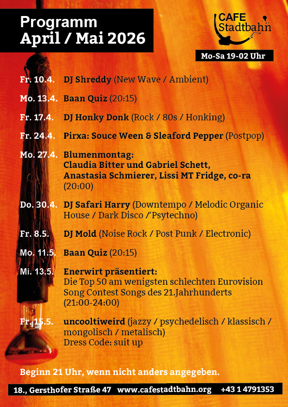 Mo bis Sa von 19 – 02 Uhr